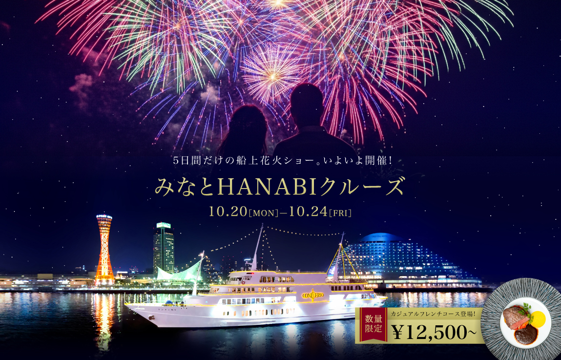 空を赤く染めて明石海峡大橋に沈むロマンチックな夕陽、海に浮かぶ宝石箱のような夜景。神戸港の最も美しい景色を、鮮魚や神戸牛などの贅を尽くしたお食事と。大切な人との記念日にもおすすめです。