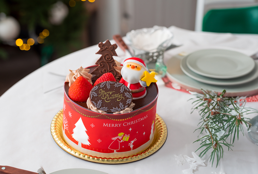 ディナーの最後には定番のホールケーキを。クリスマスパーティー気分が高まります。