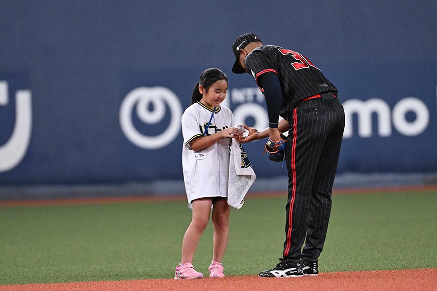 試合開始直前、グラウンドで各ポジションのスタメン選手をお迎えする特別役。