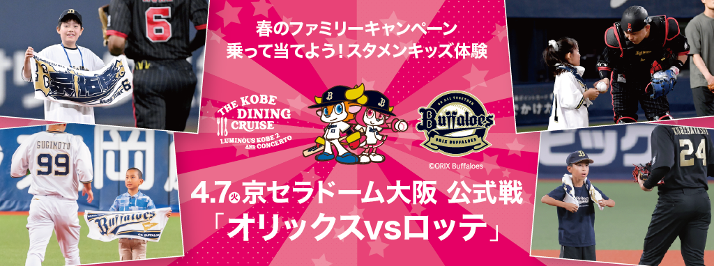 応募期間中にご乗船いただいた方の中から抽選で、京セラドーム大阪の公式戦にて、バファローズ選手を迎える特別体験「スタメンキッズ」参加権をプレゼントします。